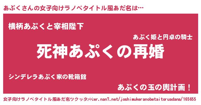 | 男性向けラノベタイトル風あだ名 | 『ノーゲーム・ノーアプク』 |