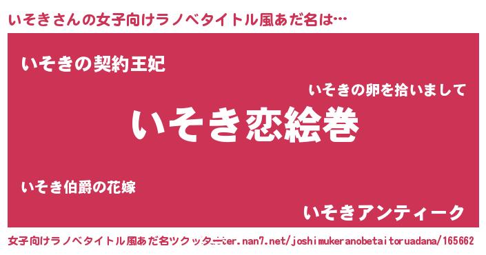 | ファンタジー風あだ名 | 『クインイット』『イソディッシュ』 |