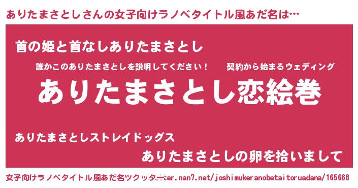 | 男性向けラノベタイトル風あだ名 | 『ノーゲーム・ノーアリタマサトシ』 |