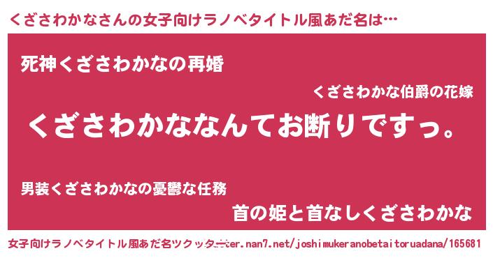 | 意味不明あだ名 | 『自称くざさわかな』 |