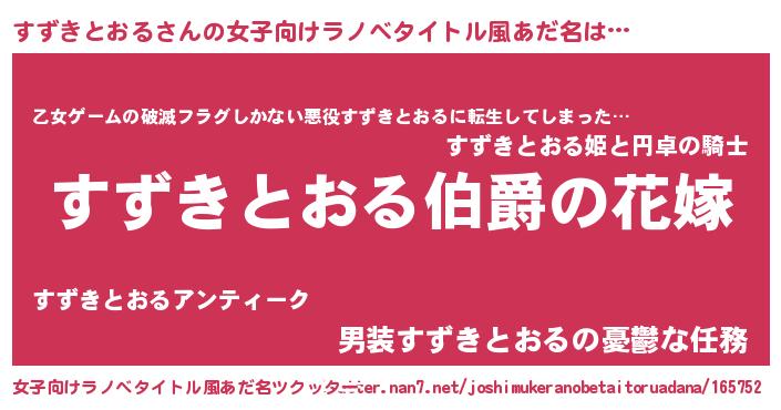 | ファンタジー風あだ名 | 『エターナルスズキトオルー』 |