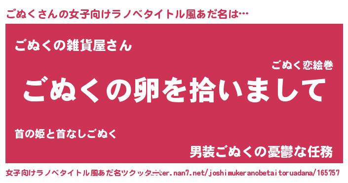 | 男性向けラノベタイトル風あだ名 | 『ダンジョンにごぬくを求めるのは間違っているだろうか』 |