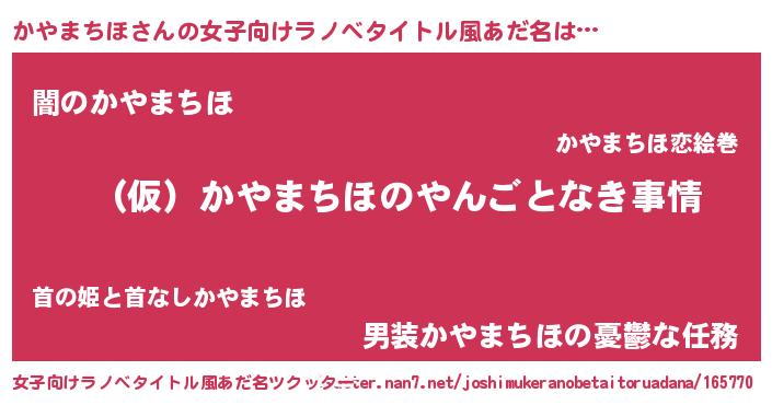 | 胡散臭い通販商品みたいなあだ名 | 『必ず成功する水晶球…その名も「かやまちほ」』 |