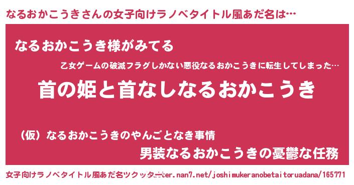 | 男性向けラノベタイトル風あだ名 | 『はたらくなるおかこうきさま!』 |