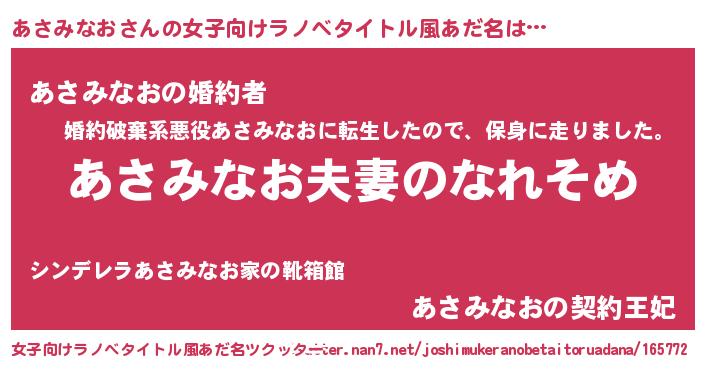 | 男性向けラノベタイトル風あだ名 | 『おまえをオタクにしてやるから、俺をあさみなおにしてくれ! 』 |