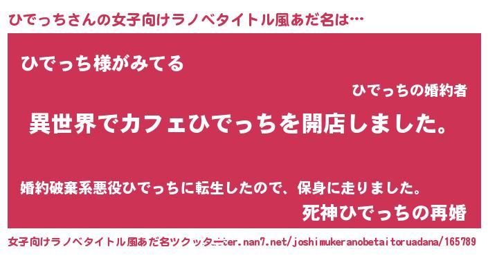 | 男性向けラノベタイトル風あだ名 | 『誰もが恐れるあのひでっちが、ぼくの専属メイドになるようです。』 |