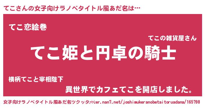 | 男性向けラノベタイトル風あだ名 | 『テコアートオンライン』 |