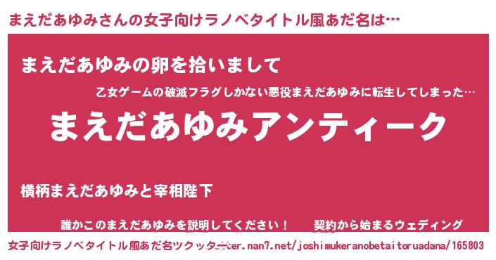| 意味不明あだ名 | 『自称まえだあゆみ』 |