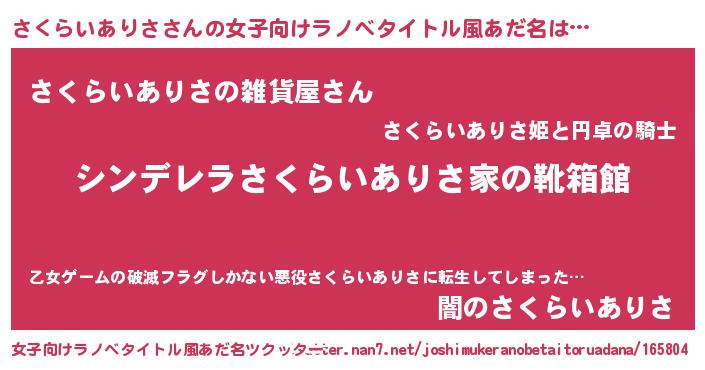 | 胡散臭い通販商品みたいなあだ名 | 『幸せが訪れる高級そうな壺…その名も「さくらいありさ」』 |