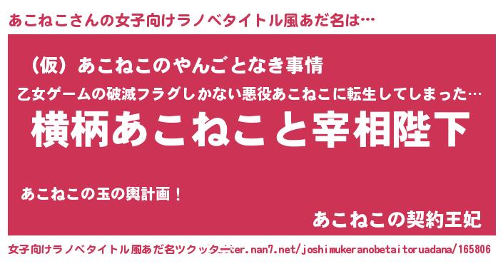 | 意味不明あだ名 | 『ペロリンあこねこ』『永久保存あこねこ』 |
