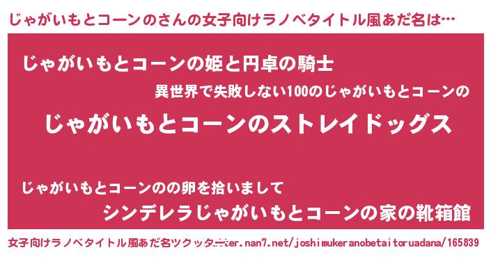| 意味不明あだ名 | 『自称じゃがいもとコーンの』 |