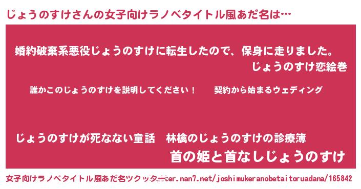 | 男性向けラノベタイトル風あだ名 | 『ジョウノスケアートオンライン』 |