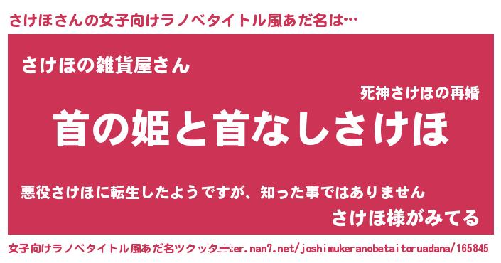 | 男性向けラノベタイトル風あだ名 | 『はたらくさけほさま!』 |