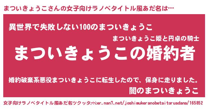 | 胡散臭い通販商品みたいなあだ名 | 『運命の人と巡り会える高級そうな壺…その名も「まついきょうこ」』 |