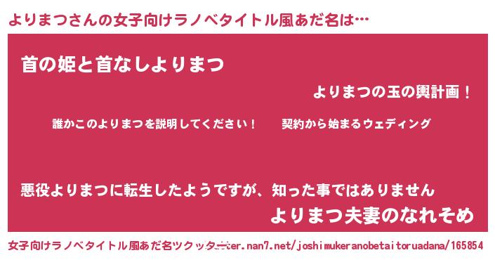 | 胡散臭い通販商品みたいなあだ名 | 『億万長者になれる霊験あらたかなお札…その名も「よりまつ」』 |