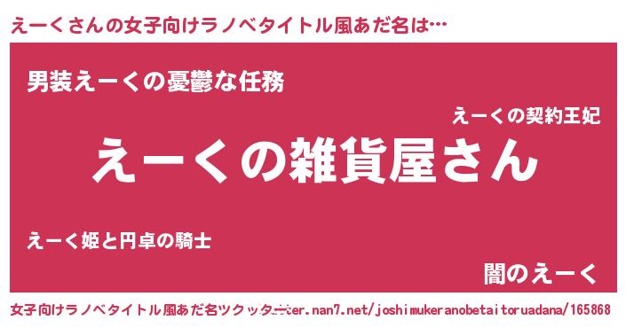 | 胡散臭い通販商品みたいなあだ名 | 『幸せが訪れる高級そうな壺…その名も「えーく」』 |