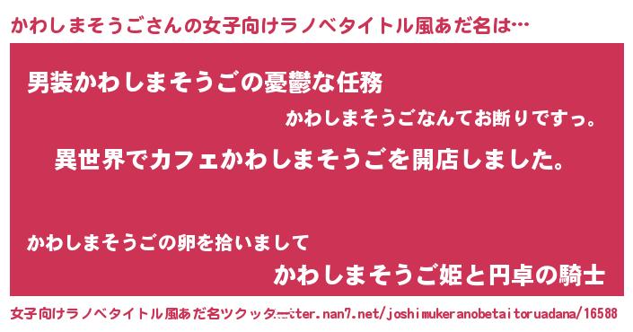 | 男性向けラノベタイトル風あだ名 | 『誰もが恐れるあのかわしまそうごが、ぼくの専属メイドになるようです。』 |