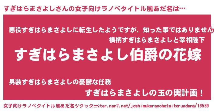 | ファンタジー風あだ名 | 『エターナルスギハラマサヨシー』 |