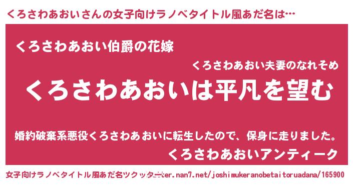 | 意味不明あだ名 | 『とにかく怪しいくろさわあおい』 |