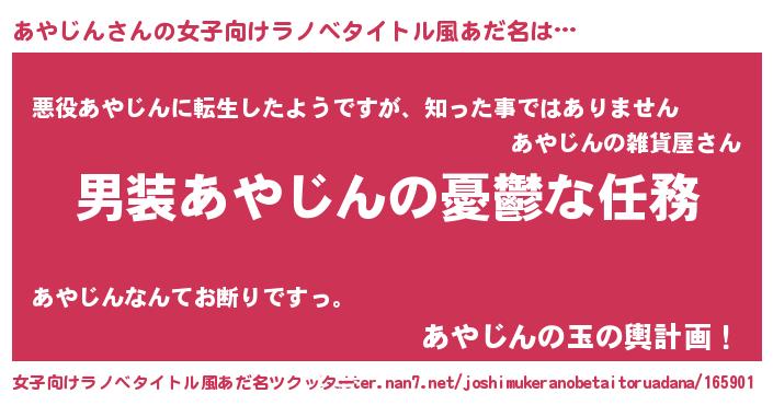 | 意味不明あだ名 | 『住所不定無職あやじん(68歳)』 |
