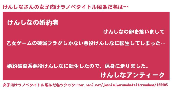 | 意味不明あだ名 | 『住所不定無職けんしな(12歳)』 |