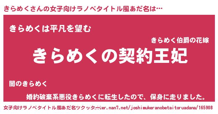 | 胡散臭い通販商品みたいなあだ名 | 『来世でも幸せになれる健康食品…その名も「きらめく」』 |