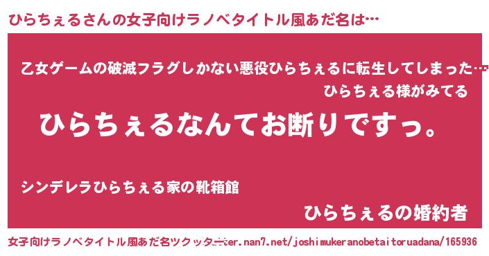 | 男性向けラノベタイトル風あだ名 | 『魔法科高校のひらちぇる』 |
