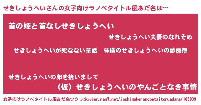| 意味不明あだ名 | 『住所不定無職せきしょうへい(14歳)』 |