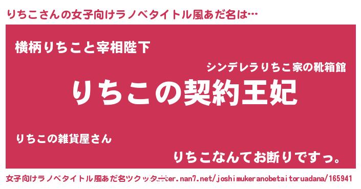 | 男性向けラノベタイトル風あだ名 | 『りちこという概念が存在しない退屈な世界 』 |