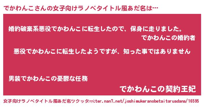 | 男性向けラノベタイトル風あだ名 | 『この素晴らしい世界にでかわんこを!』 |