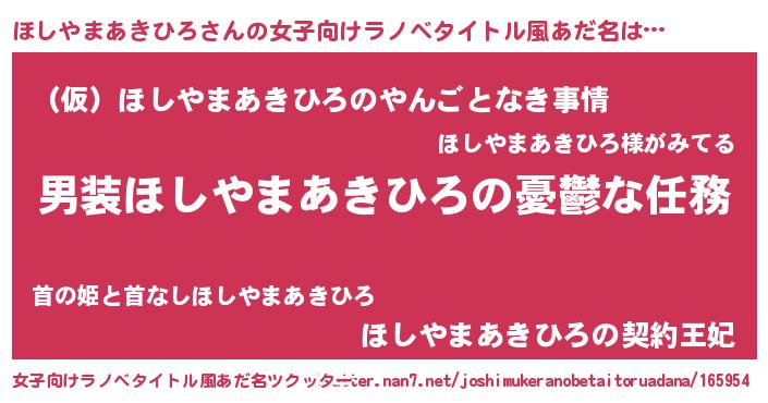 | 男性向けラノベタイトル風あだ名 | 『冴えないほしやまあきひろの育てかた』 |