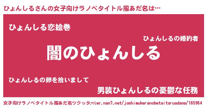 | 男性向けラノベタイトル風あだ名 | 『Re:ひょんしるから始める異世界生活』 |
