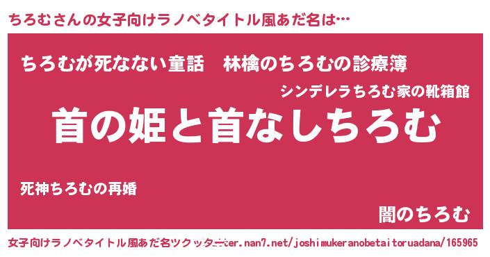 | 男性向けラノベタイトル風あだ名 | 『はたらくちろむさま!』 |