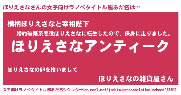 | 意味不明あだ名 | 『自称ほりえさな』 |