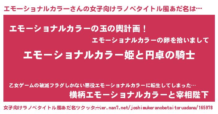 | 男性向けラノベタイトル風あだ名 | 『エモーショナルカラーアートオンライン』 |