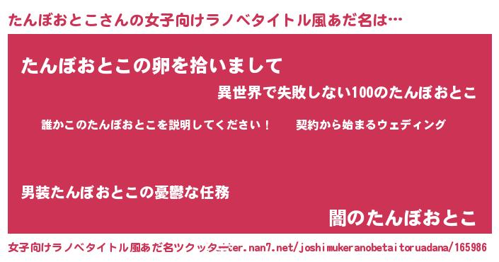 | 男性向けラノベタイトル風あだ名 | 『タンボオトコアートオンライン』 |
