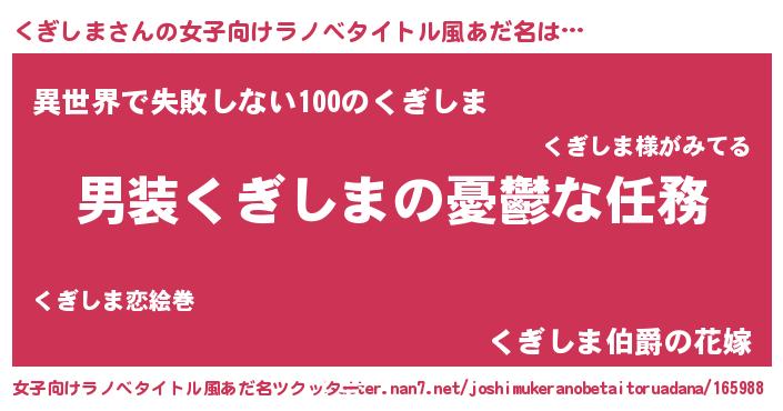 | 意味不明あだ名 | 『永久保存くぎしま』 |