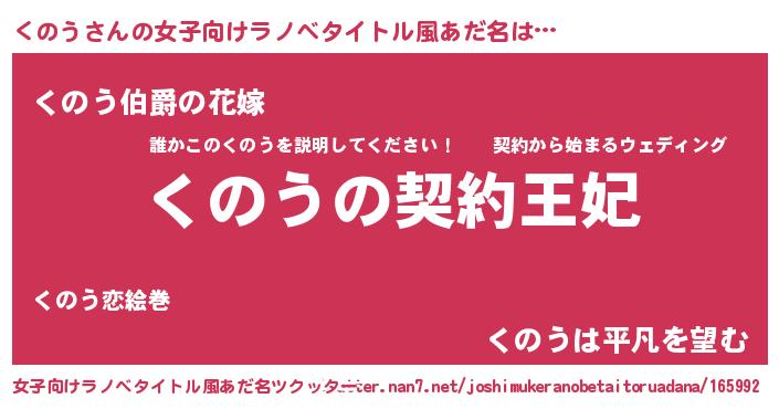 | 男性向けラノベタイトル風あだ名 | 『誰もが恐れるあのくのうが、ぼくの専属メイドになるようです。』 |