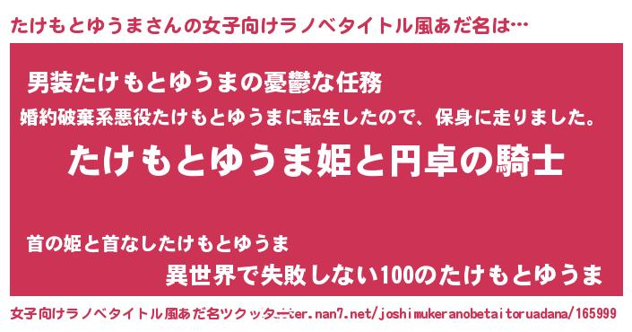 | 胡散臭い通販商品みたいなあだ名 | 『モテモテ間違いなしブレスレット…その名も「たけもとゆうま」』 |