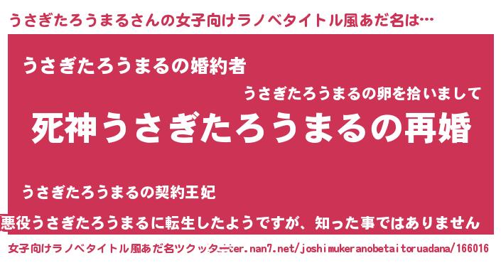 | 男性向けラノベタイトル風あだ名 | 『ノーゲーム・ノーウサギタロウマル』 |