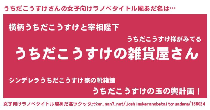 | 男性向けラノベタイトル風あだ名 | 『やはりうちだこうすけの青春ラブコメはまちがっている 』 |