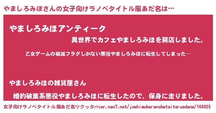 | ヘコむあだ名 | 『やましろみほ(笑)』『レバニラ』 |