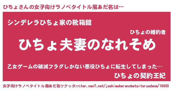 男性向けラノベタイトル風あだ名 | 『おまえをオタクにしてやるから、俺をひちょにしてくれ! 』 |