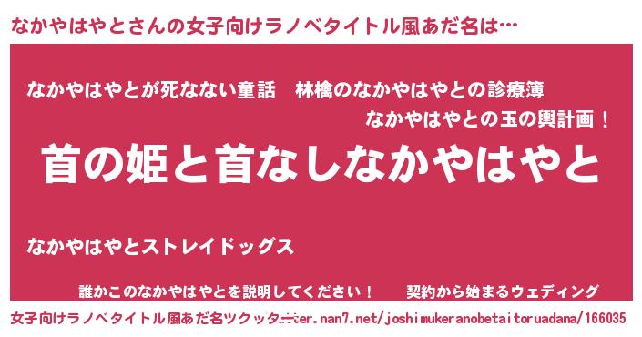 | 男性向けラノベタイトル風あだ名 | 『はたらくなかやはやとさま!』 |