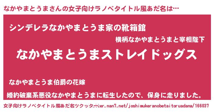 | 意味不明あだ名 | 『自称なかやまとうま』 |