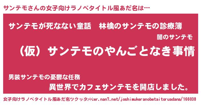 | 男性向けラノベタイトル風あだ名 | 『サンテモの憂鬱』『魔弾の王とサンテモ』 |