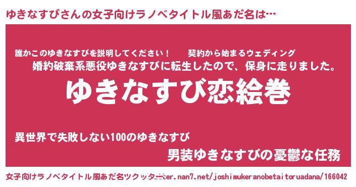 | 男性向けラノベタイトル風あだ名 | 『ノーゲーム・ノーユキナスビ』 |