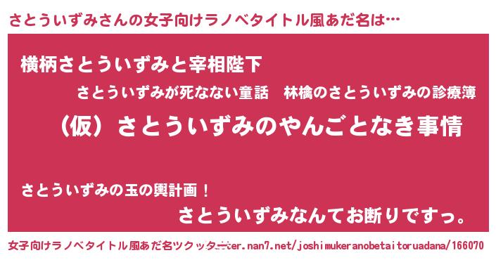 | ヒーロー風カッコイイあだ名 | 『スーパーサトウイズミ』『仮面サトダー』 |