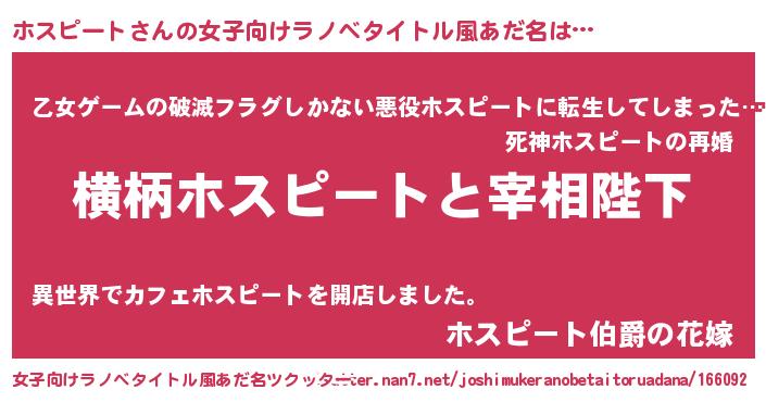 | 胡散臭い通販商品みたいなあだ名 | 『あなたにだけ特別に提供する100年もののヴィンテージワイン…その名も「ホスピート」』 |