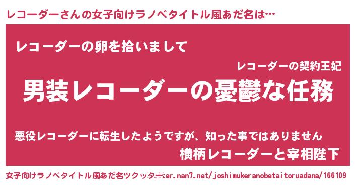 | 男性向けラノベタイトル風あだ名 | 『冴えないレコーダーの育てかた』 |